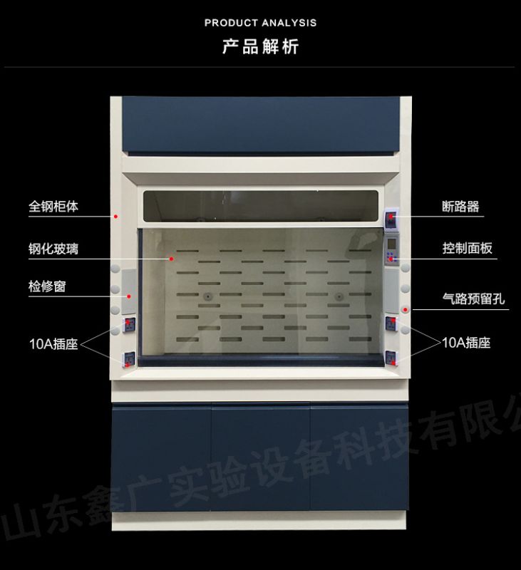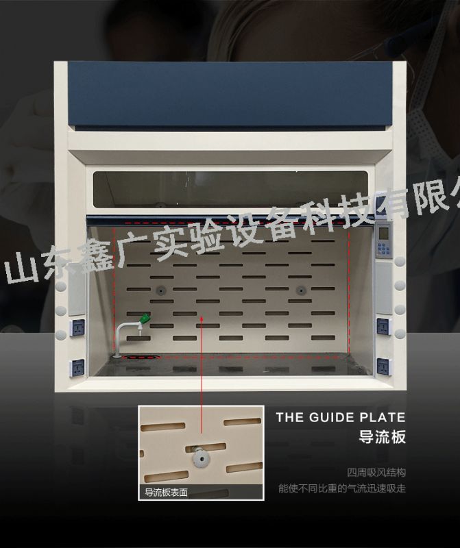 4、通風柜正前方全部為玻璃視窗,有良好的可視范圍。擾流板和內襯材料一致,擾流板支架由非金屬材料構成。
